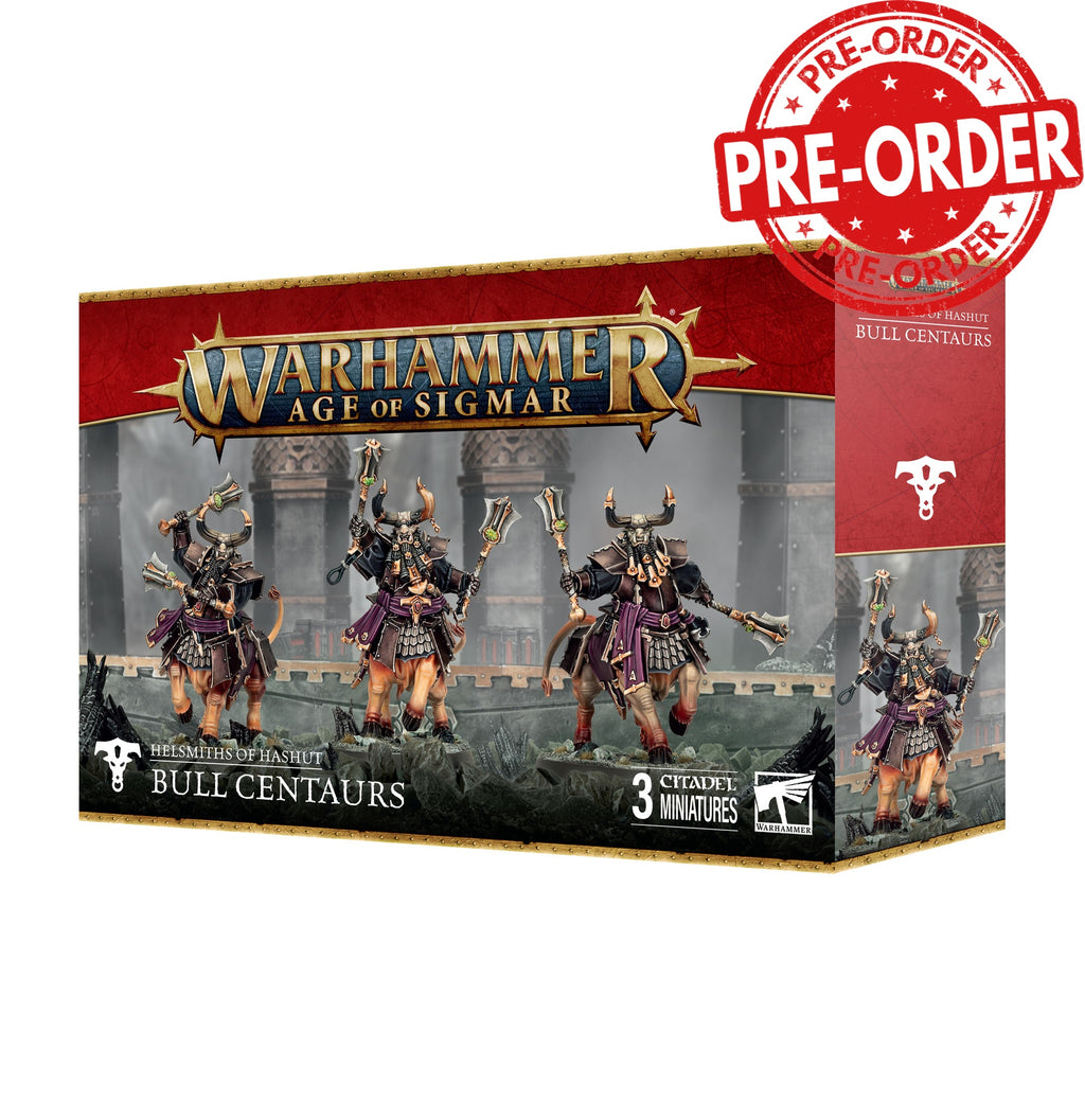 This multipart plastic kit builds three Bull Centaurs, powerful line-breakers for your Helsmiths of Hashut armies in games of Warhammer Age of Sigmar. Powerfully muscled, with hooves and horns, they are especially deadly as they charge into combat, pulping their enemies with blows from their brazen mauls. These imposing miniatures encapsulate everything brutal and intimidating about the Helsmiths of Hashut, making them a key unit in any collection and a great place to showcase your painting skills. The kit includes four sets of interchangeable horns and parts to build an optional unit champion.