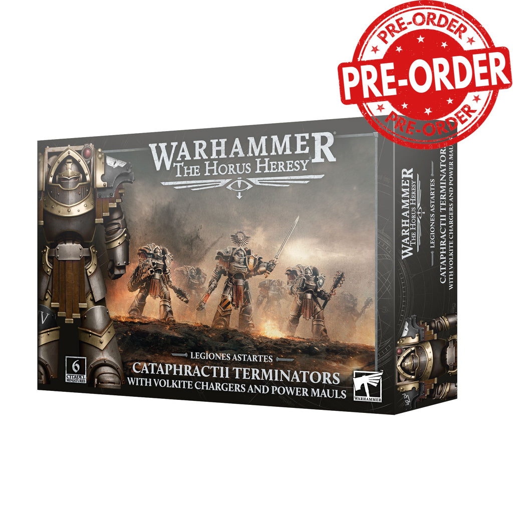 This multipart plastic kit builds six Cataphractii Terminators, elite heavy assault infantry for your Legiones Astartes armies in games of Warhammer: The Horus Heresy. Armed with volkite chargers and power mauls, they wade through a hail of enemy fire to take on their foes at close range, making them ideal for leading a slow and purposeful advance.