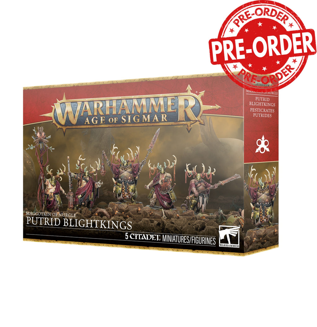 Putrid Blightkings carve their way forward with slime-encrusted blades, hammers, and axes. Their rotting bodies emanate an unnaturally offensive odour that impedes the concentration of nearby priests and wizards.