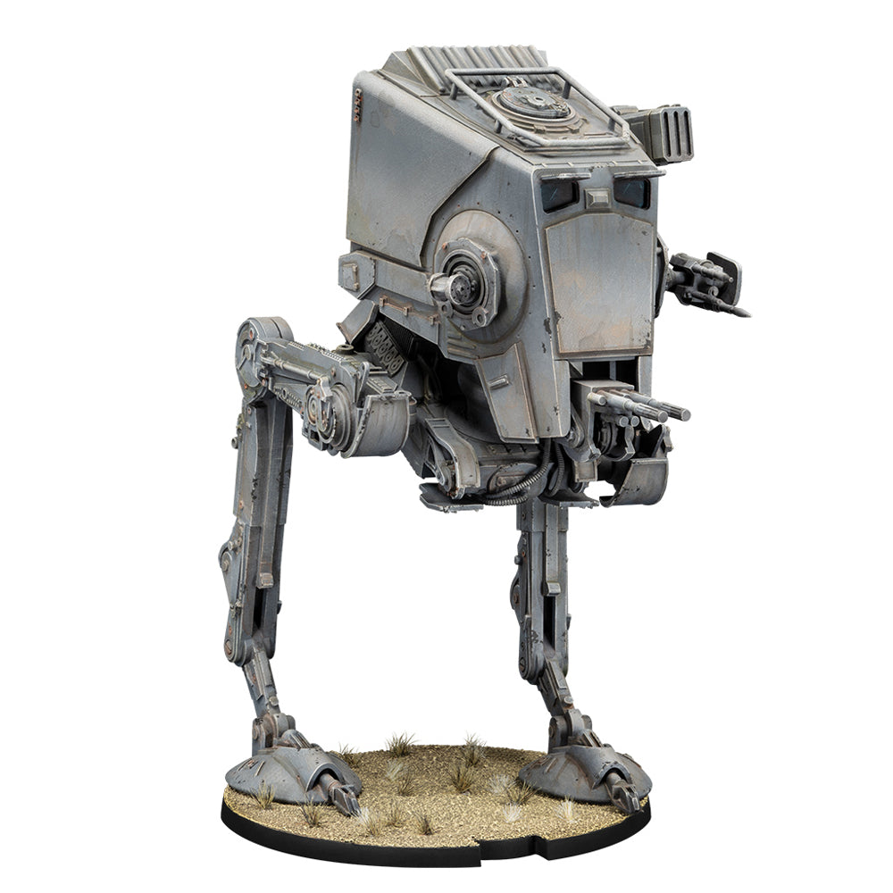 A walking weapons platform, the All-Terrain Scout Transport is a terrifying sight on the battlefield. With their diversity of armaments, AT-STs are effects against multiple different targets, from infantry in cover to heavily armored vehicles. With their long legs, AT-STs are rarely impeded by obstacles as they stride into battle and rain laser fire down upon their enemies.
